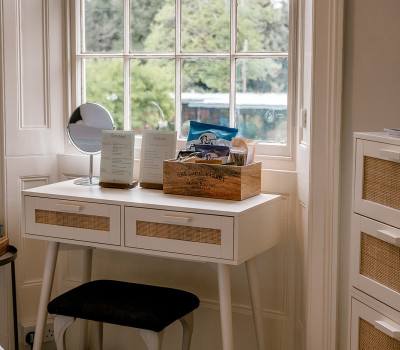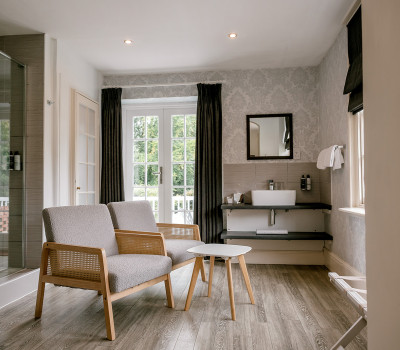 Hawthorn feels like a luxurious cottage rather than a hotel room. The sumptuous king-size bedroom leads to an open plan bathroom with walk-in rain shower and relaxing lounge area. Large bay windows make this the lightest room in the hotel. The french doors step down to a terracotta private terrace where evening drinks or a delicious hotel breakfast can complete a romantic stay at The Norfolk Mead.Hotel guests enjoy complimentary access to our spa facilities for two hours (subject to availability).